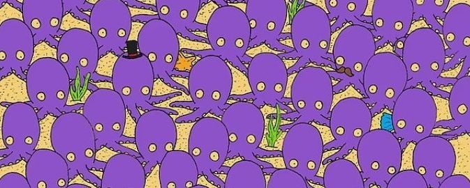 Een van deze tekeningen laat veel octopussen zien. In eerste instantie zal het lijken alsof er niemand anders is dan octopussen, maar dat is niet zo – ergens ligt er een vis op de loer, schrijft jagranjosh.