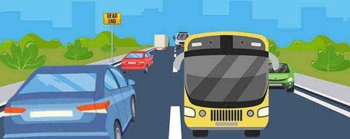 Nu het goede antwoord. De fout in het plaatje is dat het bord links van de weg verkeerd is, er staat “doodlopende weg”, wat misleidend is.
