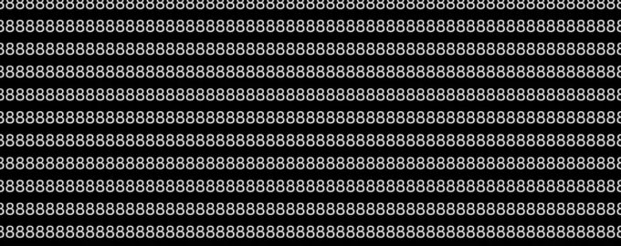 In de afbeelding zijn de cijfers 8 gelijkmatig in kolommen en rijen geplaatst, waardoor het effect van visuele “ruis” ontstaat. In deze chaos is een ander cijfer verborgen – bijna onmerkbaar, maar het doorbreekt het algemene ritme.