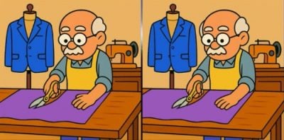 In een andere visuele puzzel moet je drie verschillen vinden tussen twee illustraties waarop een opa-dief te zien is die met een schaar stoffen knipt, schrijft jagranjosh.