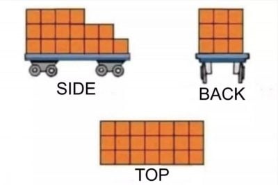 Op de afbeelding zie je een vrachtwagen die verschillende kubussen vervoert. Maar hoeveel kubussen precies is niet duidelijk.