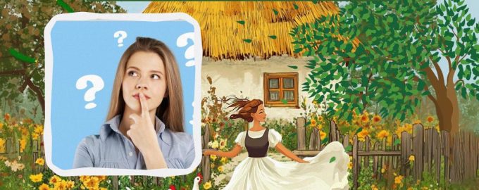 De afbeelding toont een meisje dat geniet van een mooie dag in de tuin tegen de achtergrond van een mooi huis en een groene tuin. Het lijkt een gewone foto te zijn, maar er is één detail dat buiten de werkelijkheid valt.