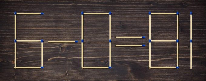 In deze puzzel moet je twee lucifers verwisselen om de vergelijking kloppend te maken.