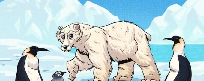 Op de foto zien we een ijsbeer en pinguïns. Het lijkt niets ongewoons. Maar iets in de foto is niet zoals het zou moeten zijn.